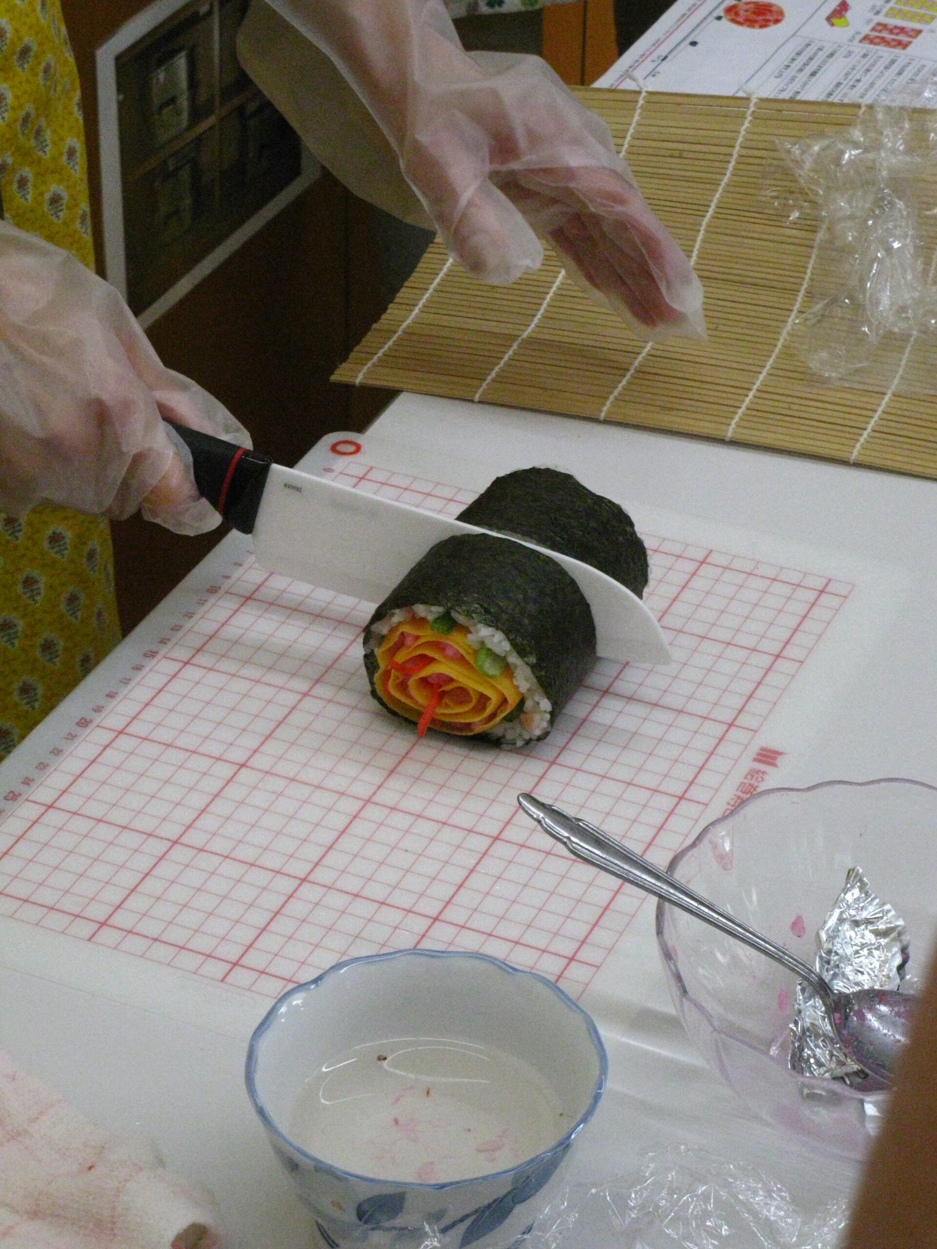 以前にもやったことがあり、とても好評だったバラの絵巻き寿司をもう一度、です。