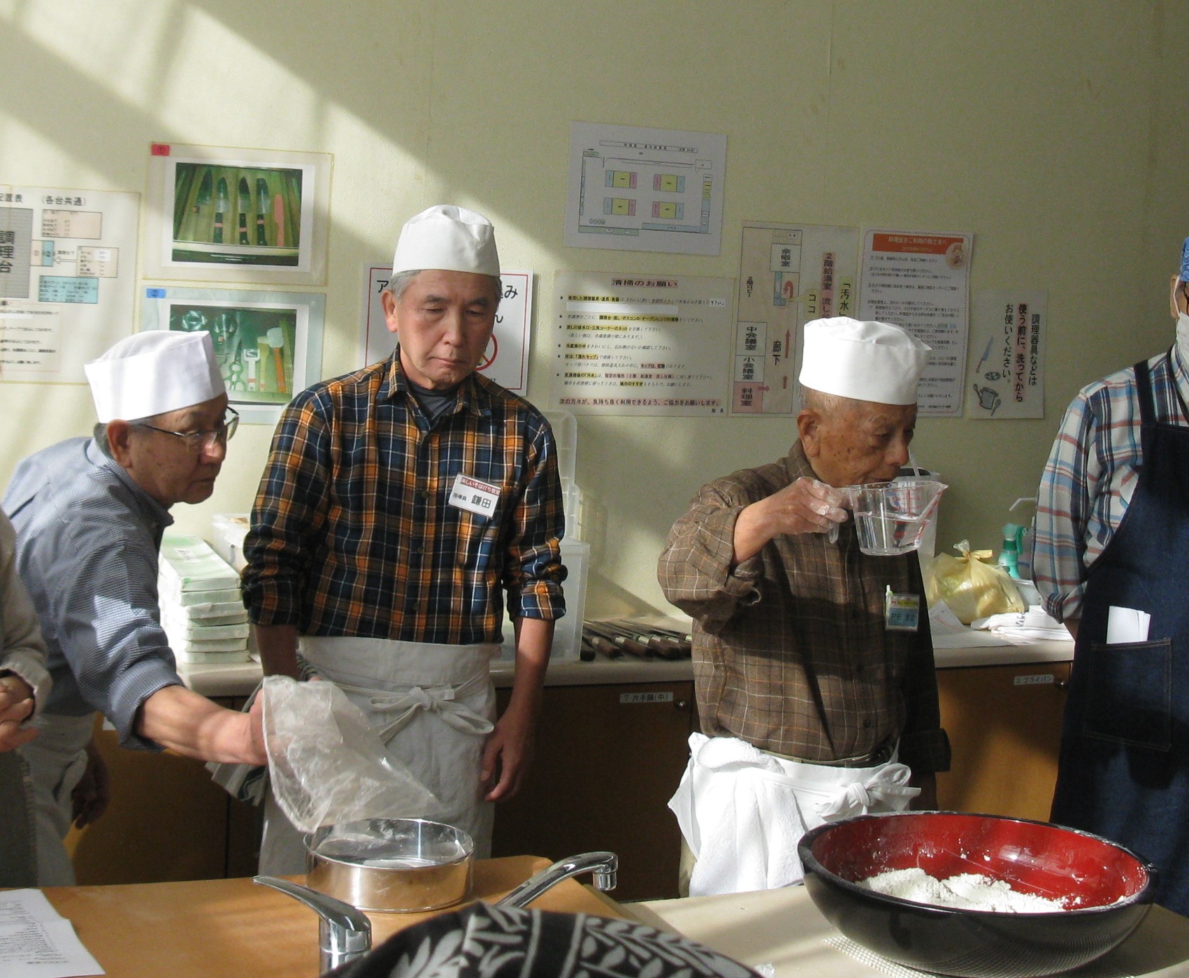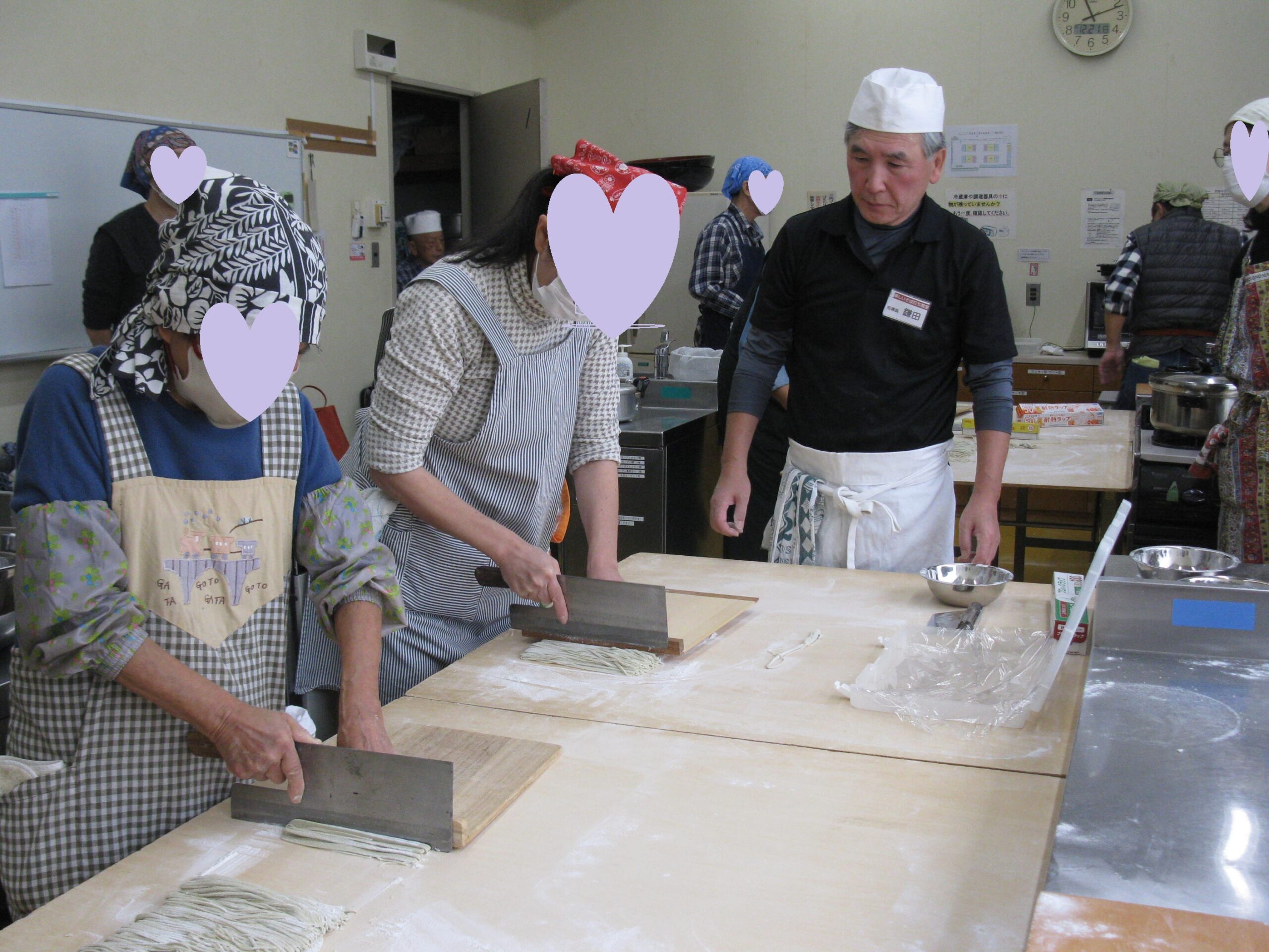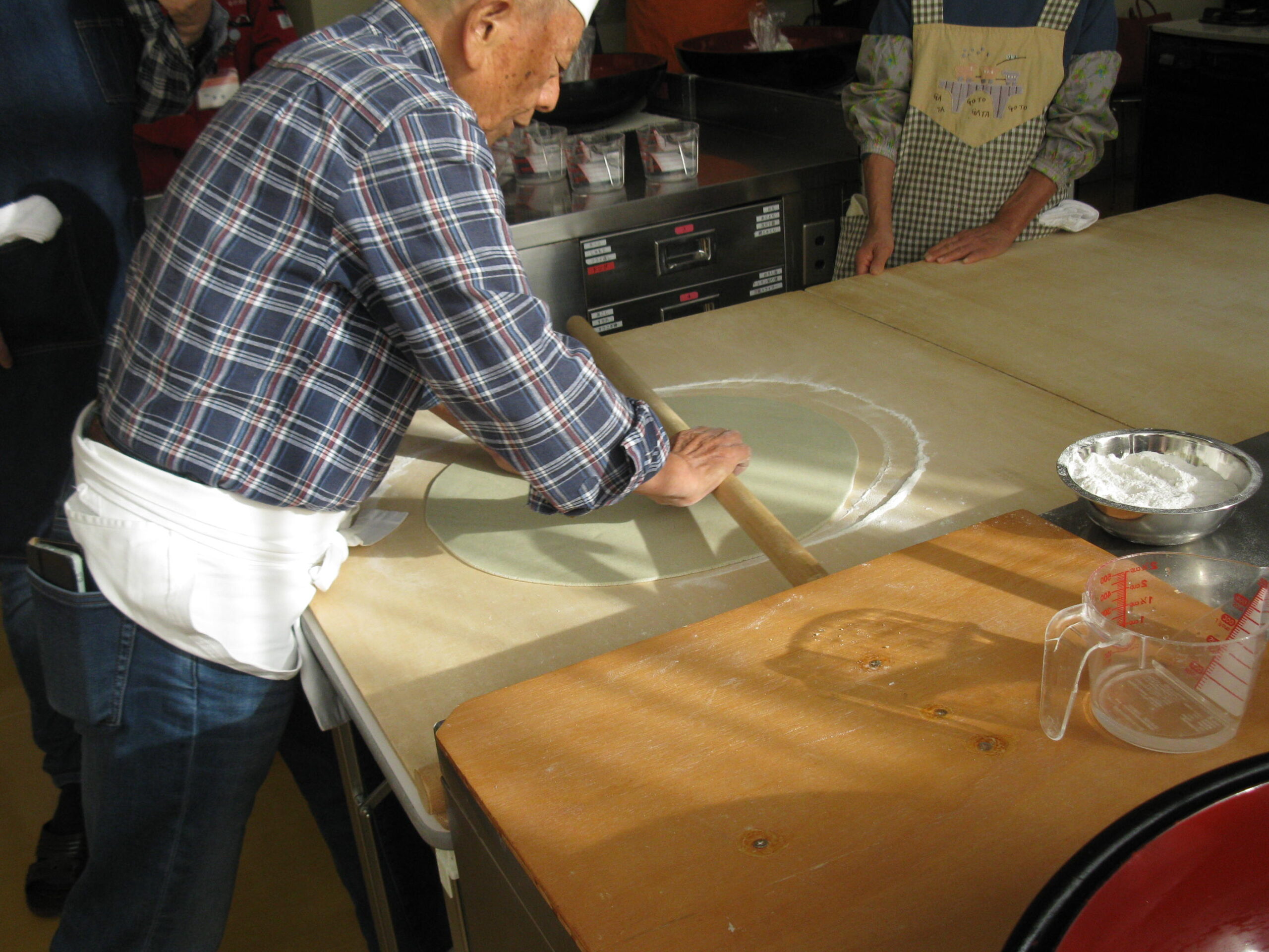 鎌田先生や西村先生にもやさしく指導していただいています。3回目になると初めての方でも手つきが様になってきます。お蕎麦も細くなりましたね。