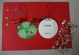 スタッフお手製のオーナメントにシールやおりがみで作った☆や♡で飾りをしていただいき、ツリーにつるします🌳