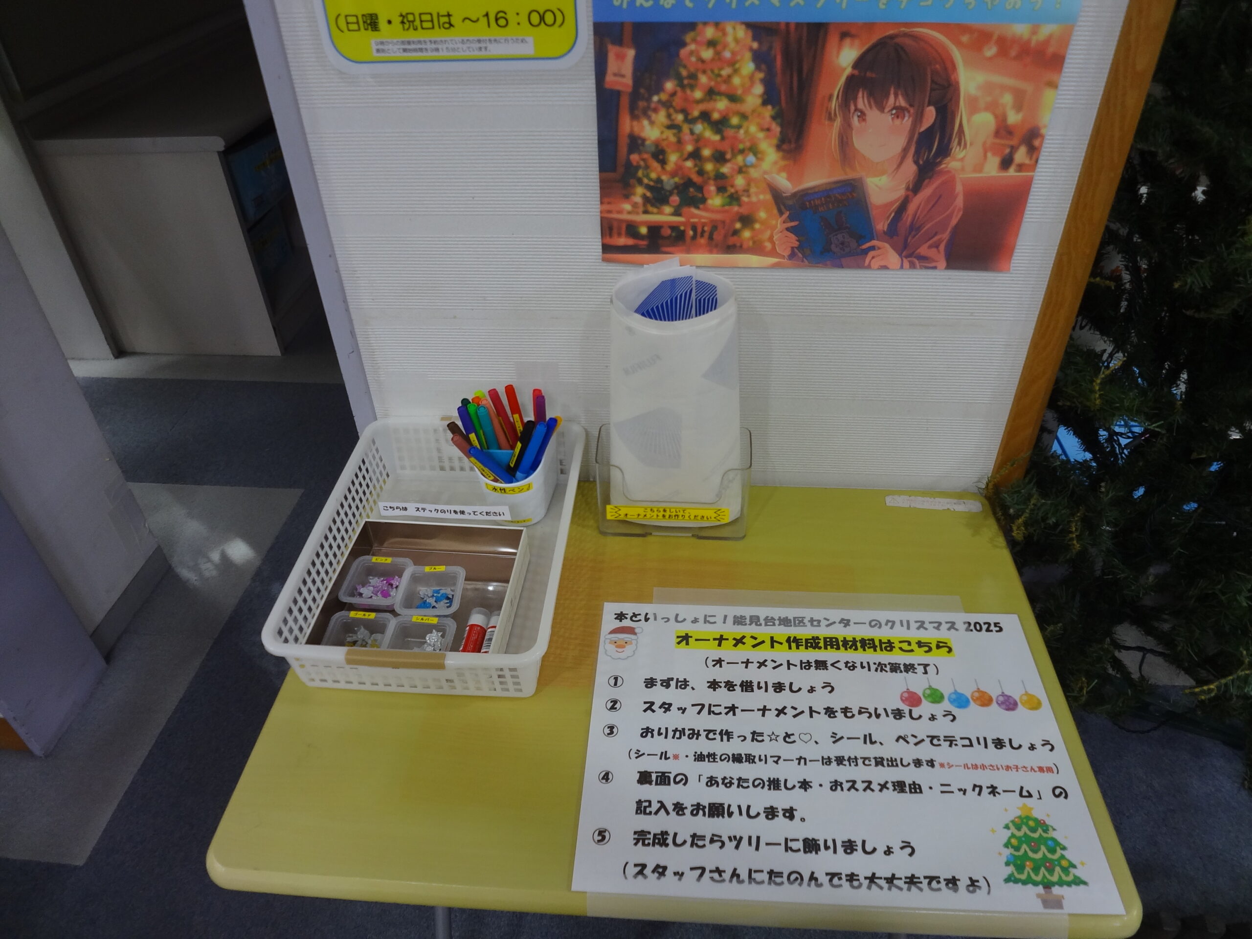 11月5日より「本といっしょに!能見台地区センターのクリスマス2025」開催中です。
