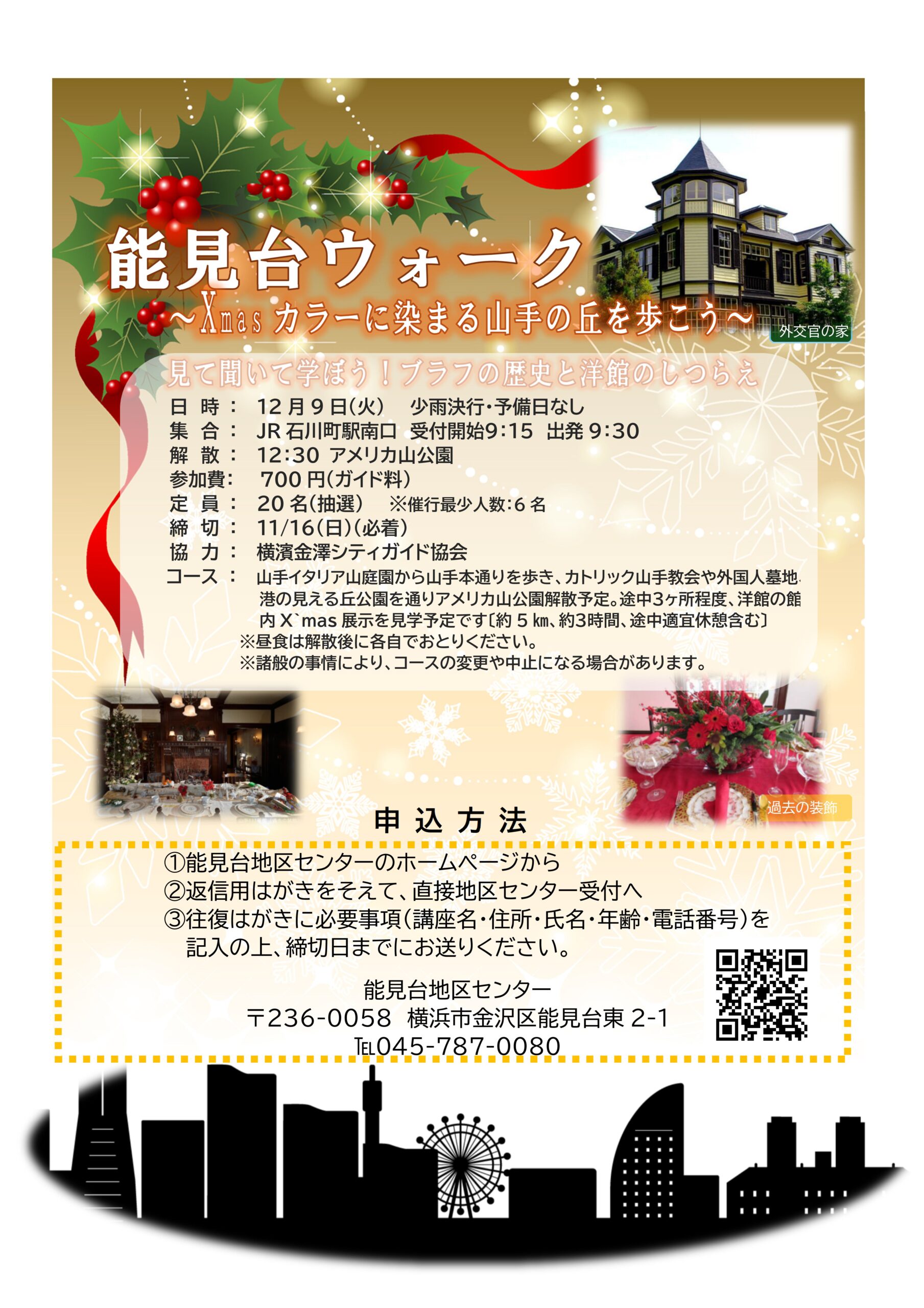 その時期、山手西洋館では「世界のクリスマス2025」を開催しているようで、この「ウォーク」でも3つほど、洋館をめぐり、クリスマスに彩られた異人館を見学する予定です。