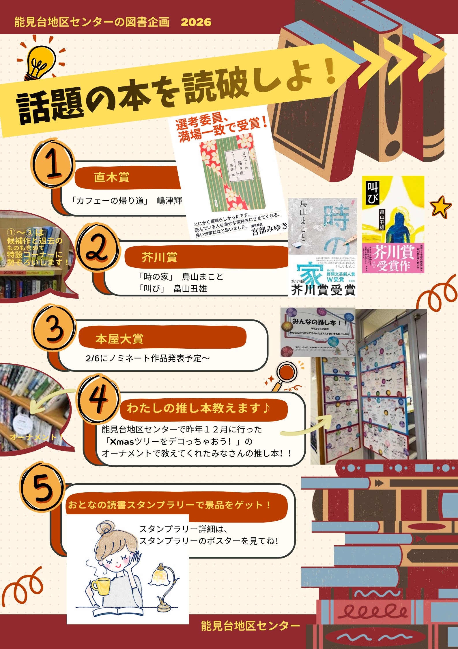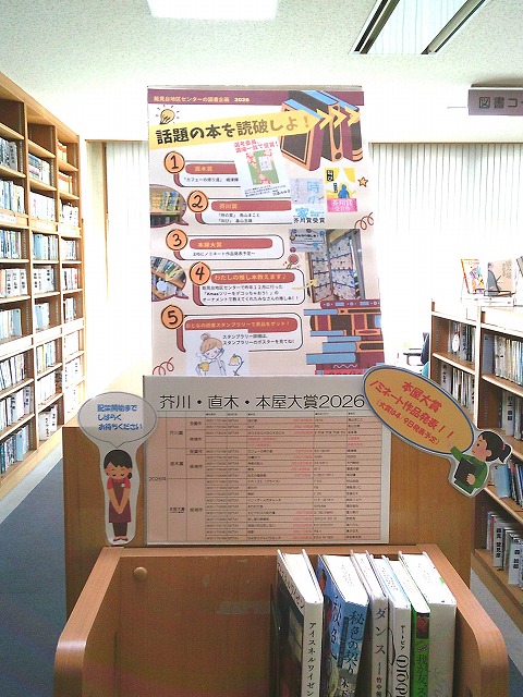 2月3日より図書特設コーナーにて、『芥川賞・直木賞・本屋大賞2026』を開始しました。