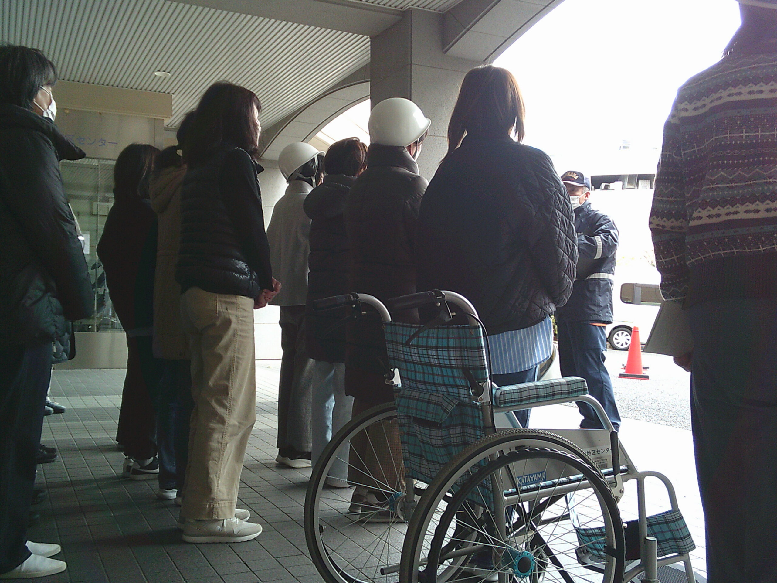 スタッフが当日の利用者を避難誘導し、さらにスタッフ自身が車椅子に乗って避難体験を行いました。